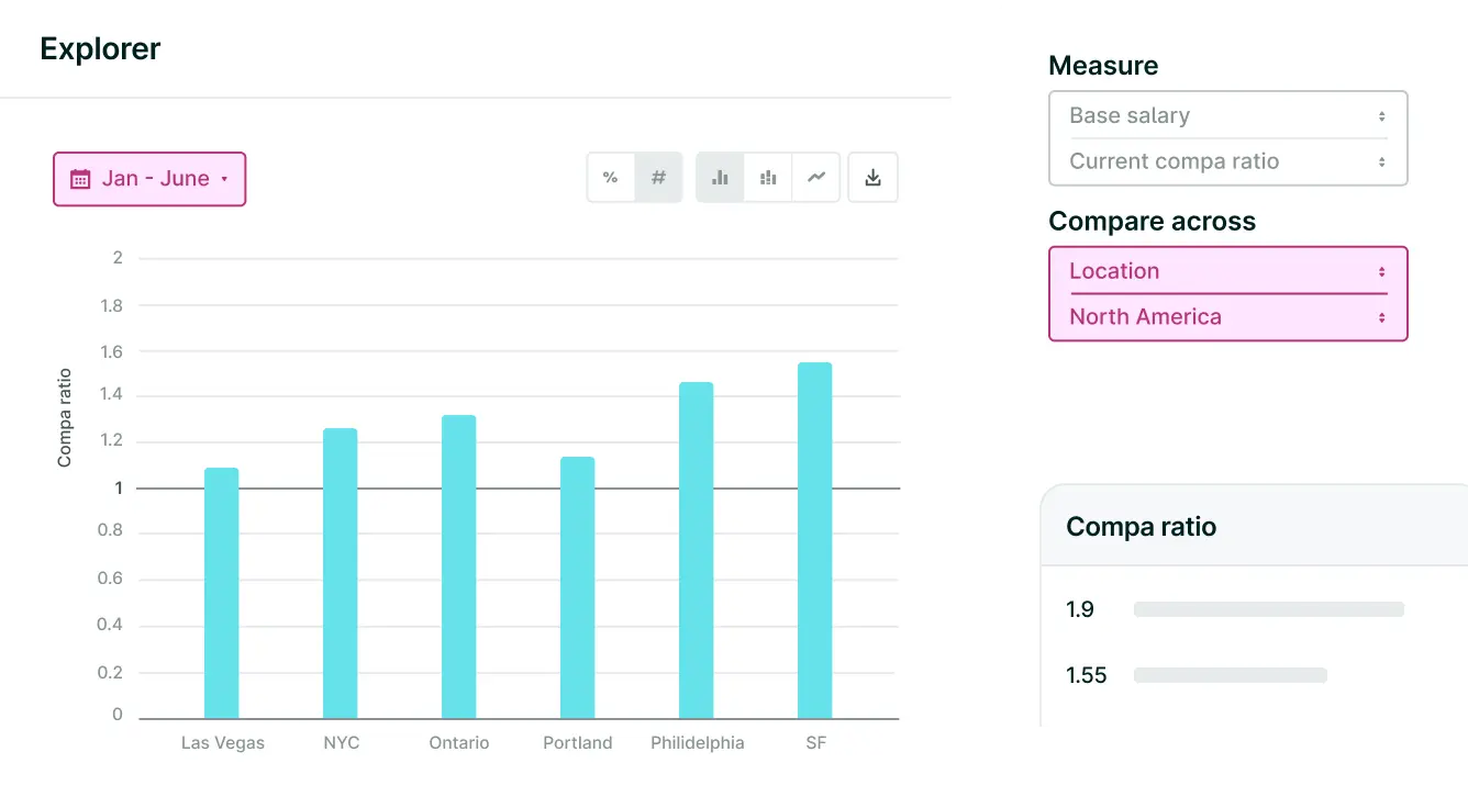 Analytics are baked in every step of the way to help you create and maintain your budget, evaluate fairness across the org, and view trends over time.