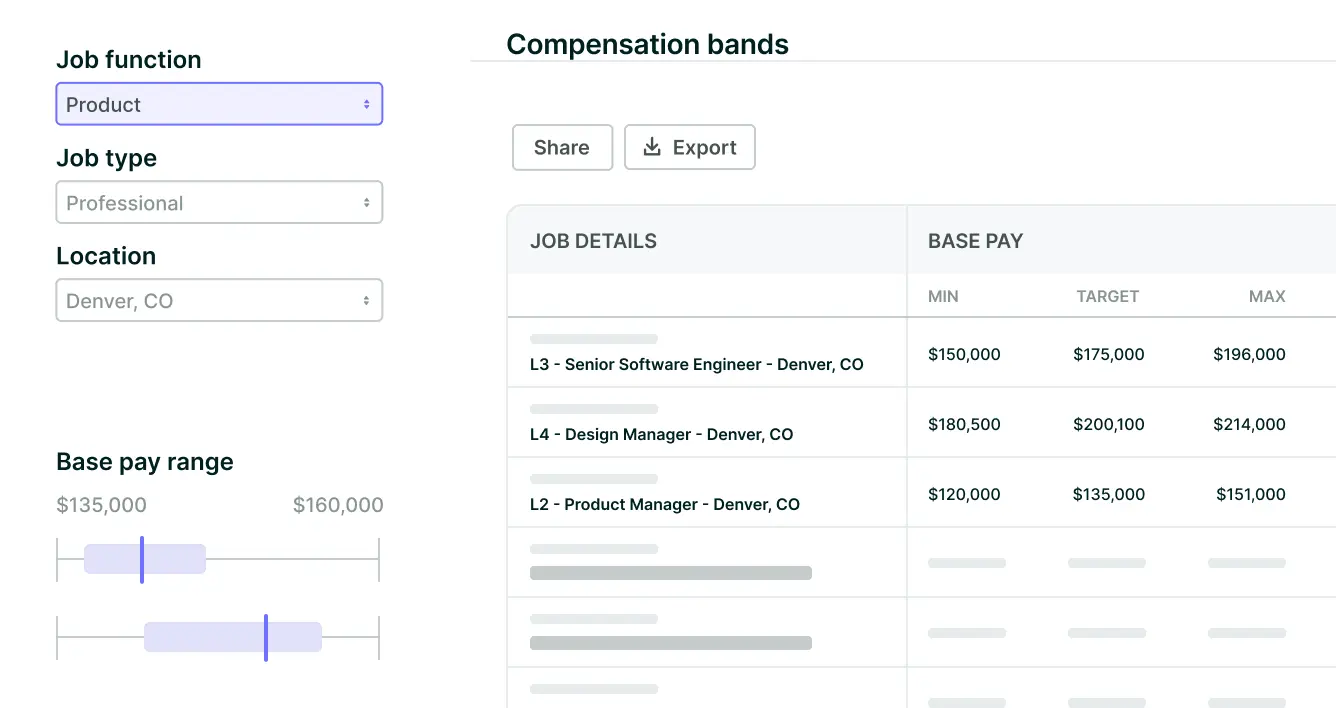 Build, edit, visualize, and share your compensation bands to provide clarity and guidance for every role.