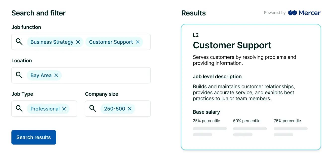 Get accurate market benchmarks based on role, level, geography and more to inform your compensation rates. Powered by Mercer.