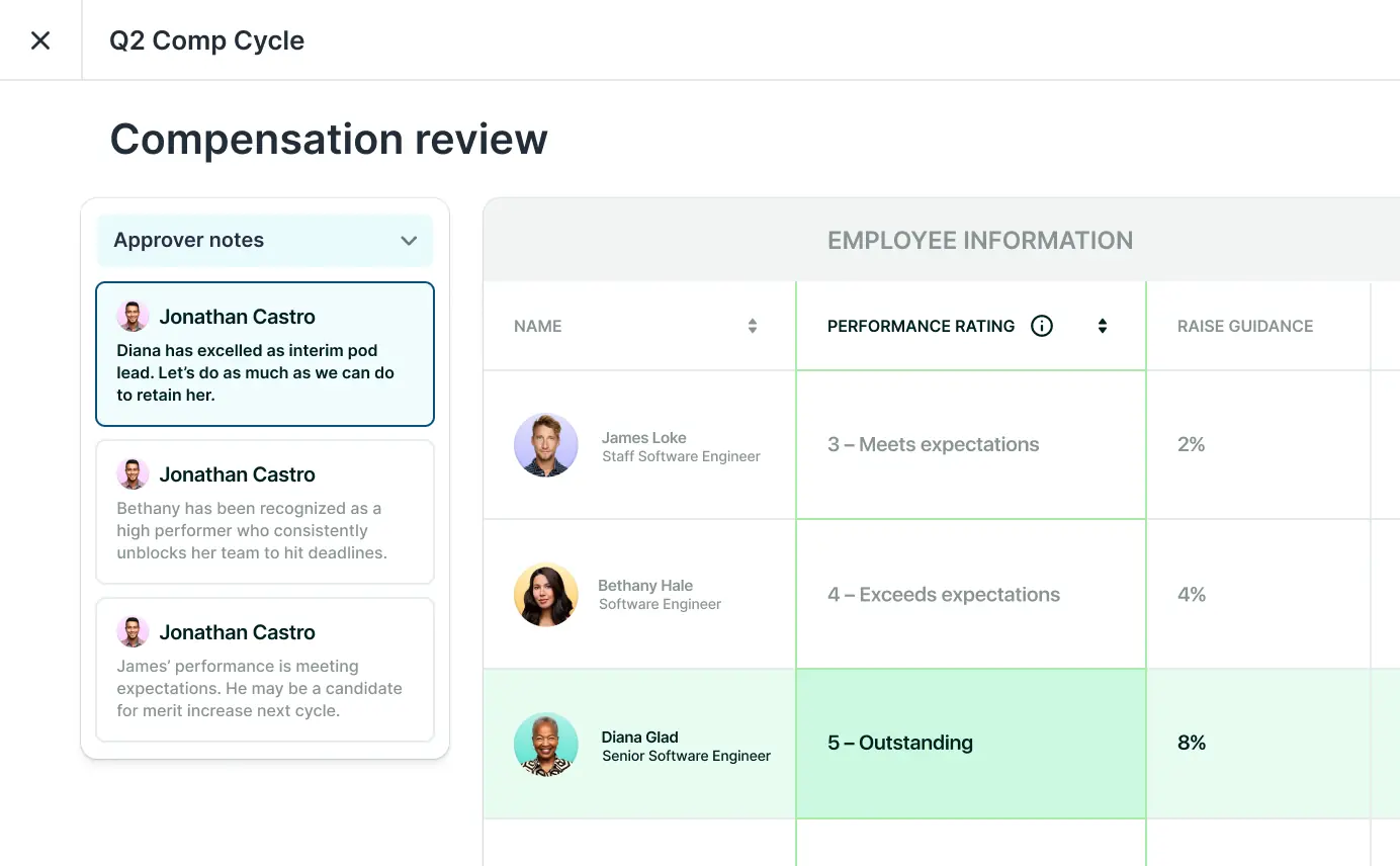 Lattice connects performance review cycle results with compensation decisions, creating fair and equitable pay outcomes by aligning compensation with employee performance.