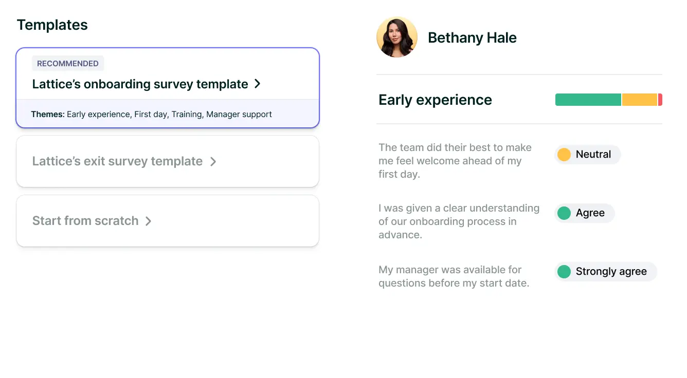 From hire to retire, Lattice gives you the tools to capture feedback from your employees about how to improve onboarding programs, reduce regrettable attrition, and improve employee engagement.