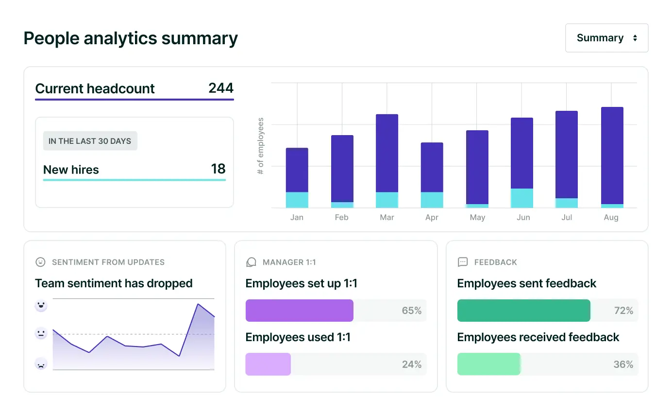 Lattice's HRIS Report Builder is part of the Lattice HRIS platform, ensuring seamless integration with performance management, engagement, and development tools. This integration provides a holistic view of employee data, enhancing strategic HR initiatives. More information on Lattice Integrations can be found here.