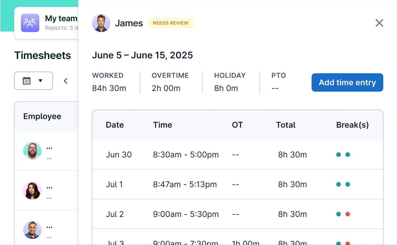 Seamlessly track and approve hours, run accurate payroll, and simplify compliance.