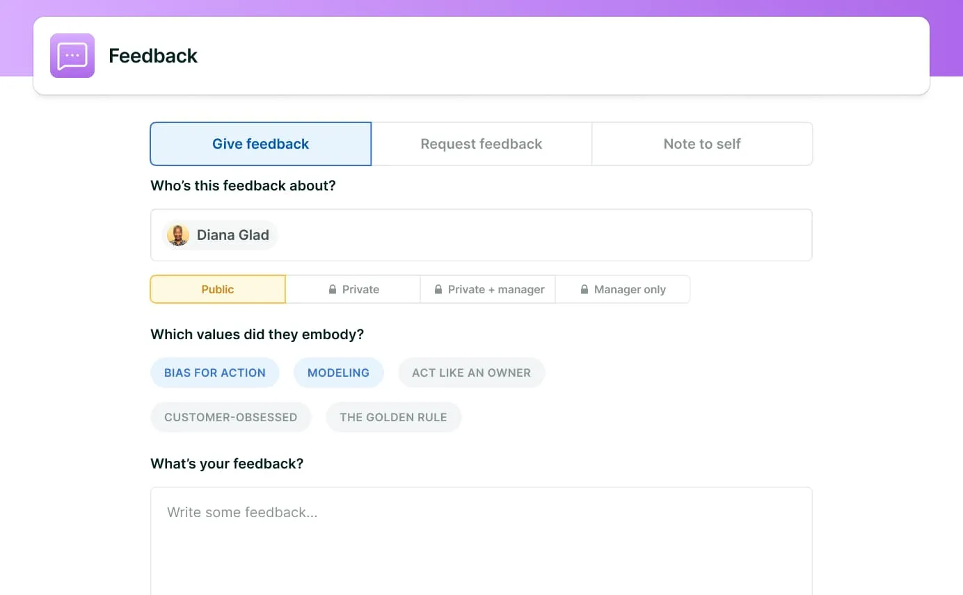 Share public praise to recognize hard work, celebrate wins, and reinforce high performance.