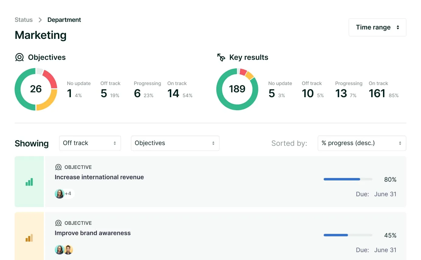 Ensure alignment across your entire organization by making strategic objectives crystal clear. Lattice gives you a speedy, frictionless platform for setting, tracking, and reflecting on goals.