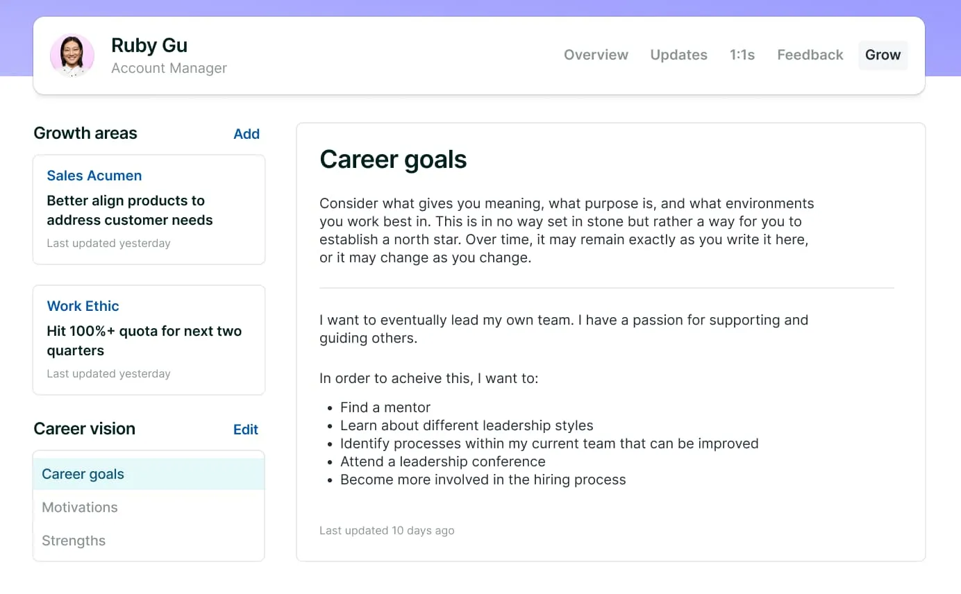 Lattice helps you connect your achievements to business outcomes and your professional goals with company priorities.
