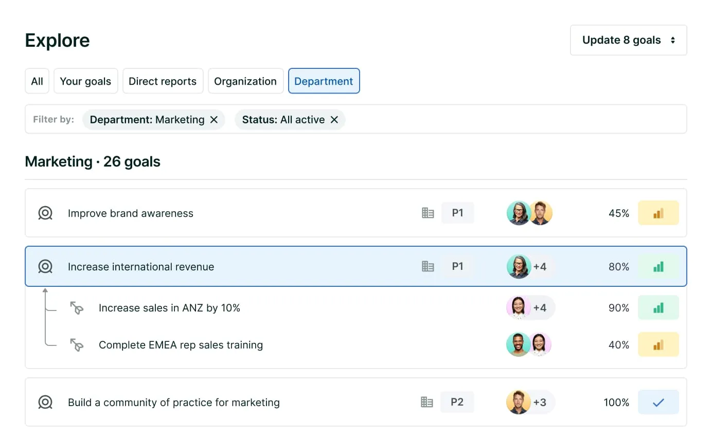 Lattice enables professional services firms to set and track goals across the organization, ensuring that individual and team objectives are aligned with strategic business priorities. This alignment fosters a culture of accountability and drives business success.