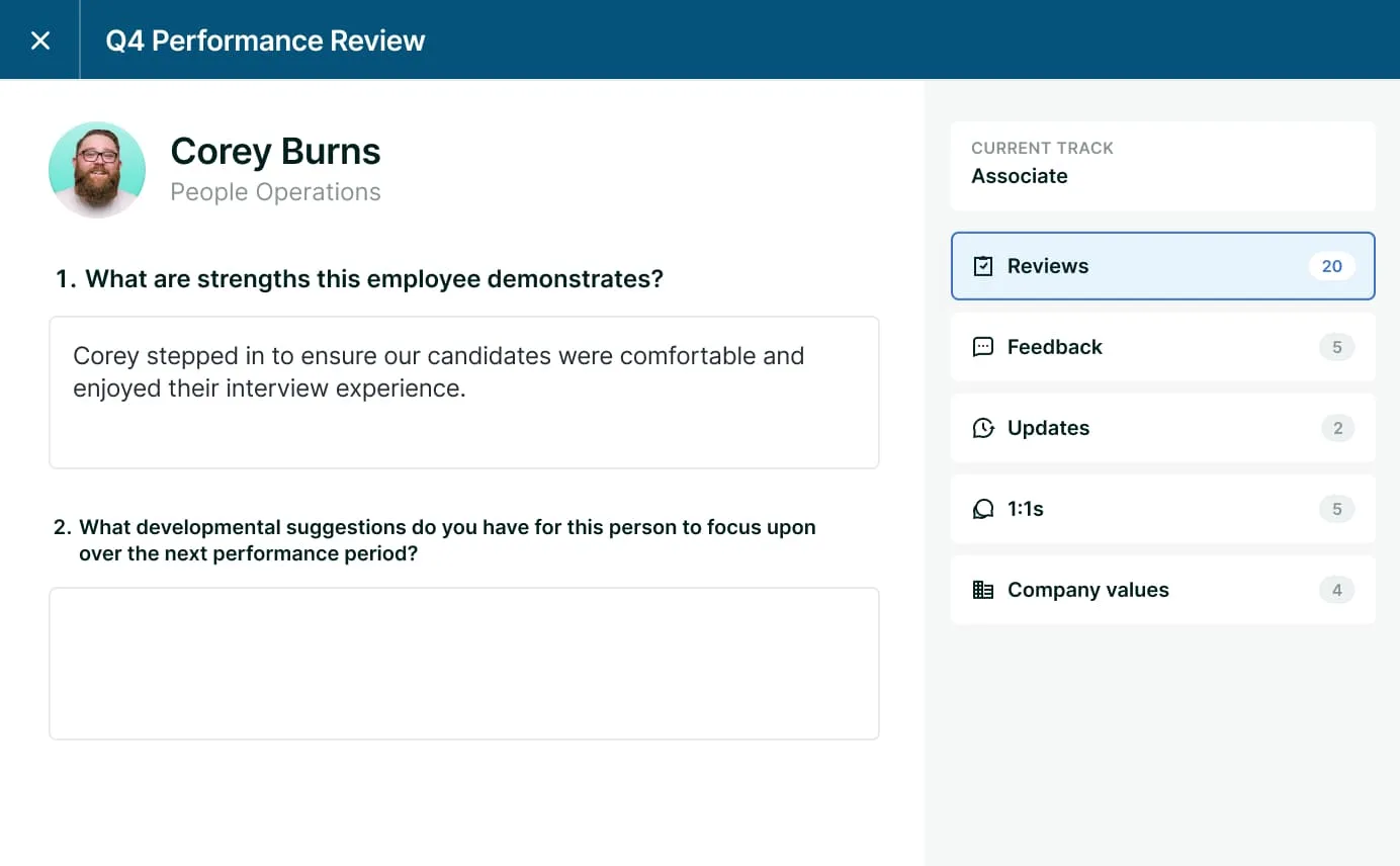 Lattice centralizes everything in one place: highlighting peer feedback, performance metrics, and more so you can easily celebrate accomplishments and identify improvement areas.